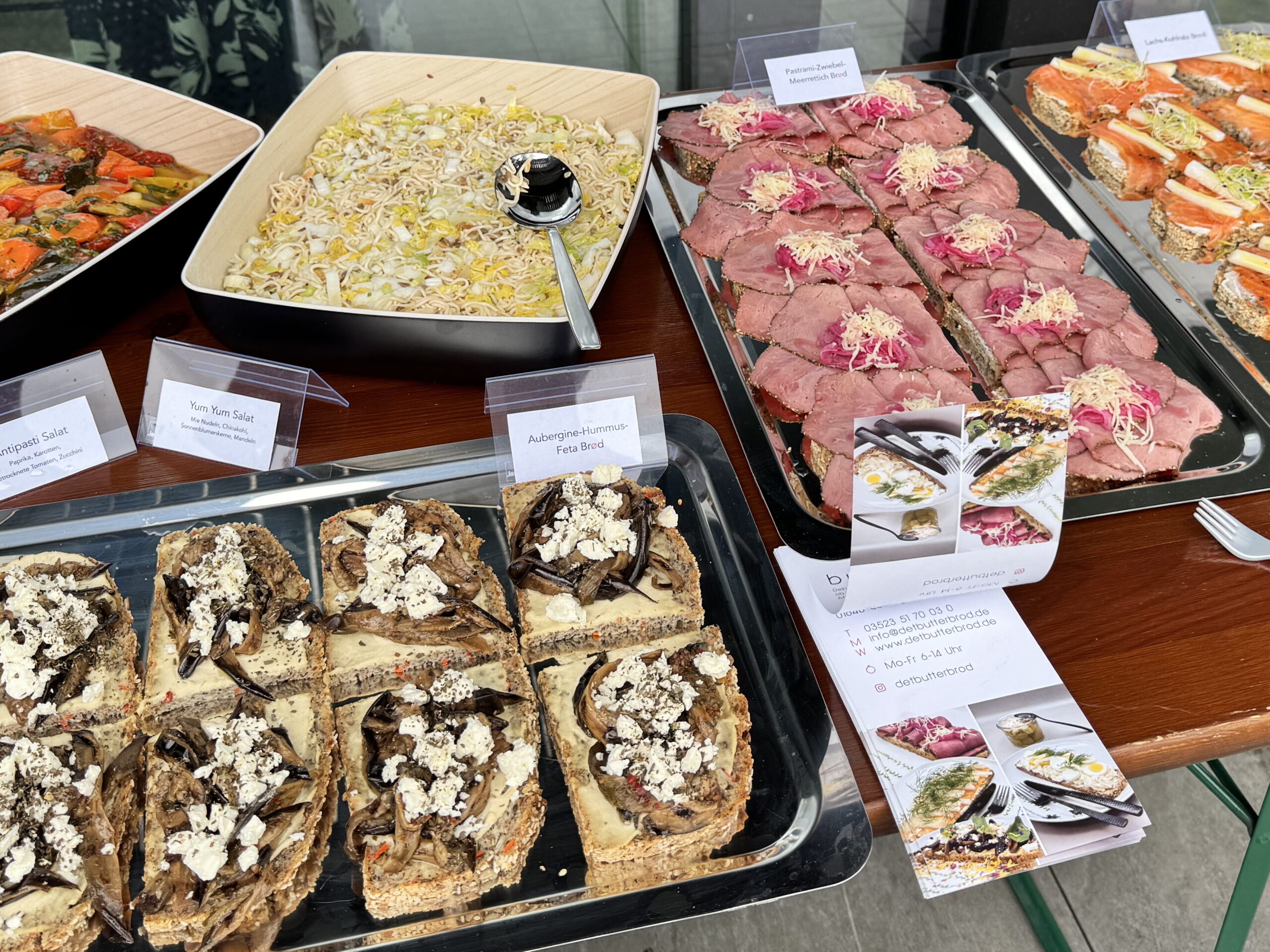 Sie planen eine Feier, ein Firmenmeeting oder ein privates Event? Mit unserem butterbrød-Catering bringen wir besondere Geschmackserlebnisse direkt zu Ihnen. Unsere kreativ belegten Brote sind perfekt für jeden Anlass – frisch zubereitet, einzigartig im Geschmack und liebevoll angerichtet. Egal ob kleine Zusammenkunft oder große Veranstaltung, wir sorgen dafür, dass Ihre